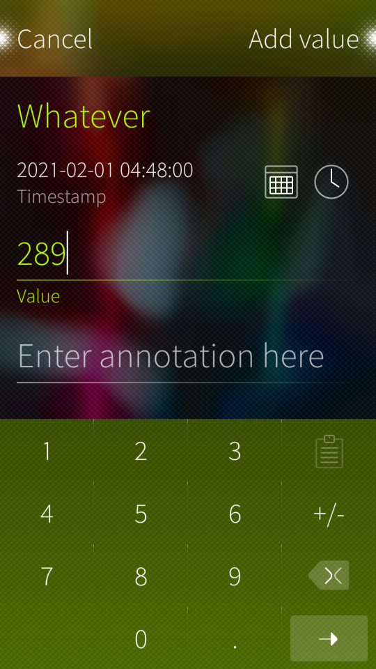 ~/.local/share/harbour-valuelogger/harbour-valuelogger/valueLoggerDb.sqlitefile to the new device. That's fairly easy if you have developer mode enabled on both devices.If you have My Backup installed on the old device, have added Value Logger to the backup and do a restore on the new device, that would essentially do that same thing, i.e. copy the entire database file.