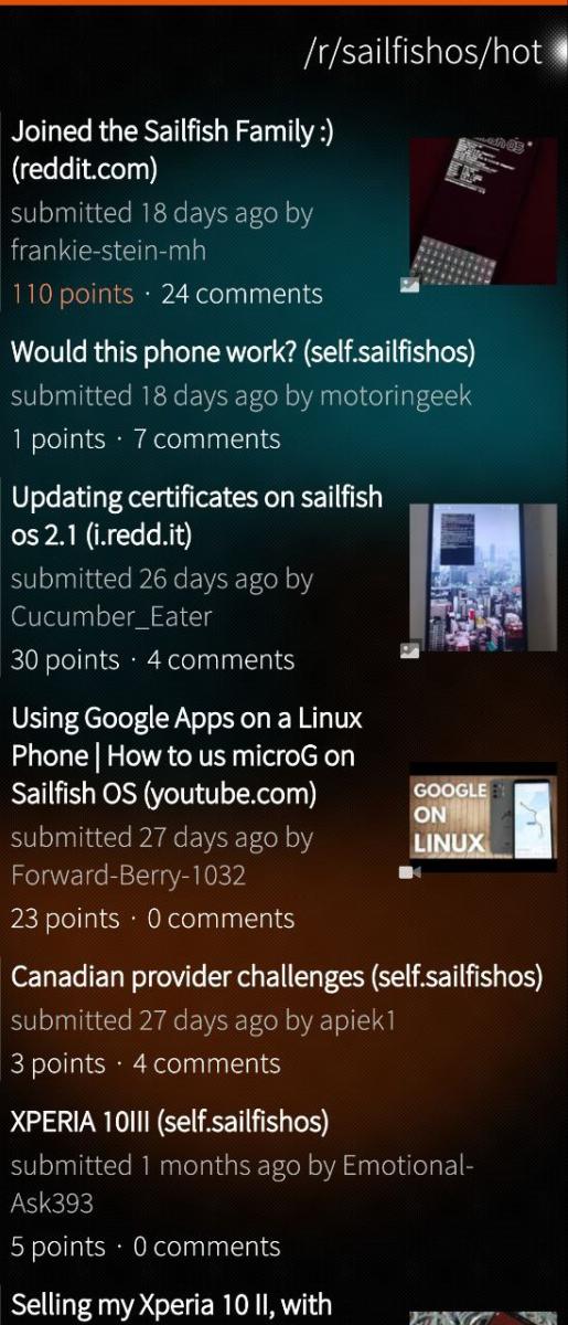 Added support for adaptive video, which should get most v.reddit and youtube videos playing with sound. Enable it in the settings to try it out, but playback is a little unstable. Changes need to be made in the SailfishOS media middleware to sort those out - it's not used to dealing with this sort of thing. You can also now see some video metadata and elapsed time on the video player page.