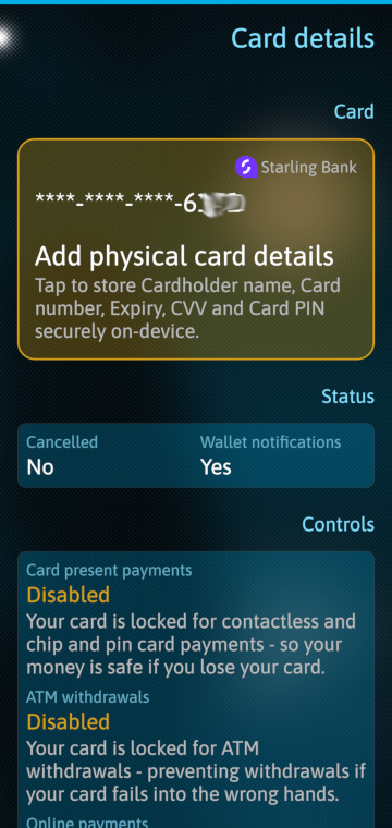 All the limitations are from how Starling designed their APIs (and how they allow developers to use them). Overall, I don't complain because this is the ONLY bank I found that provives APIs and gives the opportunity for people like me to develop an app to use their banking service. If Halifax, Lloyds, Cooperative, NatWest, Nationwide, etc. did provide such an option, I'd love to develop apps for their services too. Sadly, they are not offering other than their official apps to interact with their system.