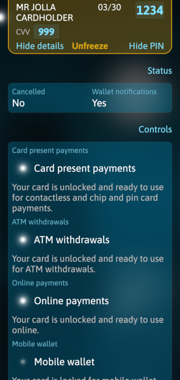 However, if you want to be able to freeze/unfreeze your bank card and create/delete new payees, you'll need to create two access tokens