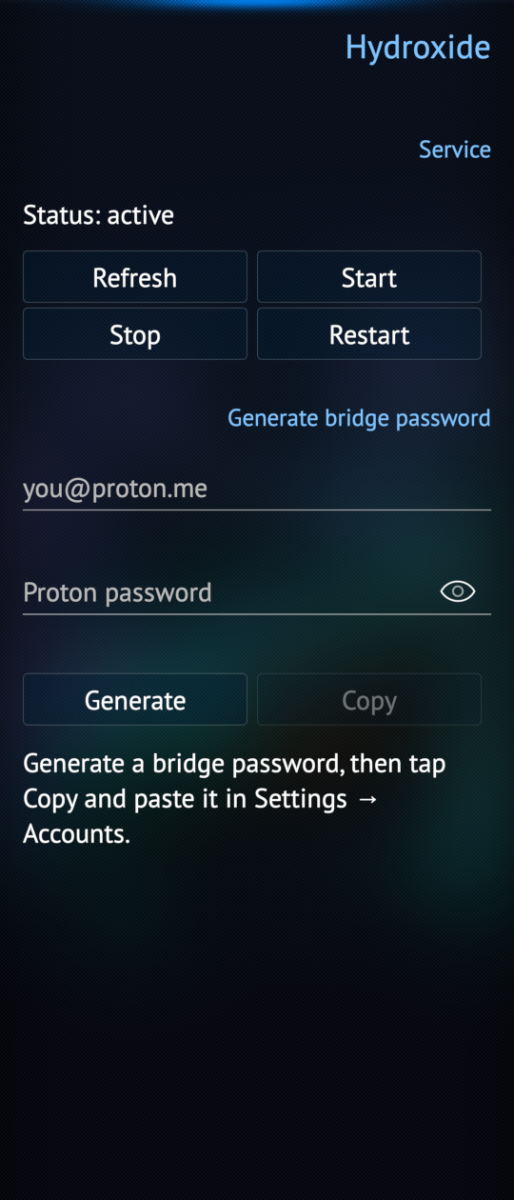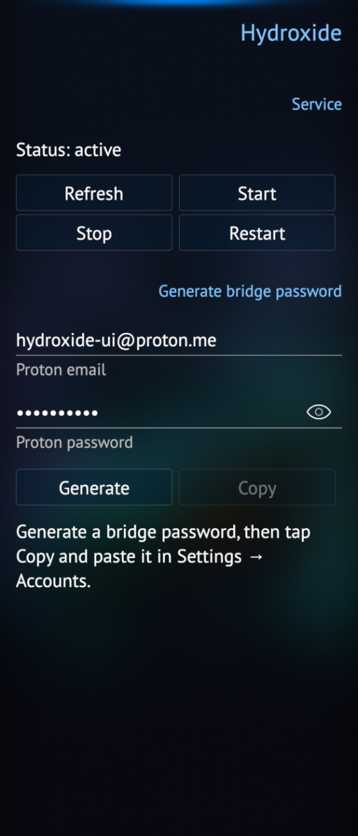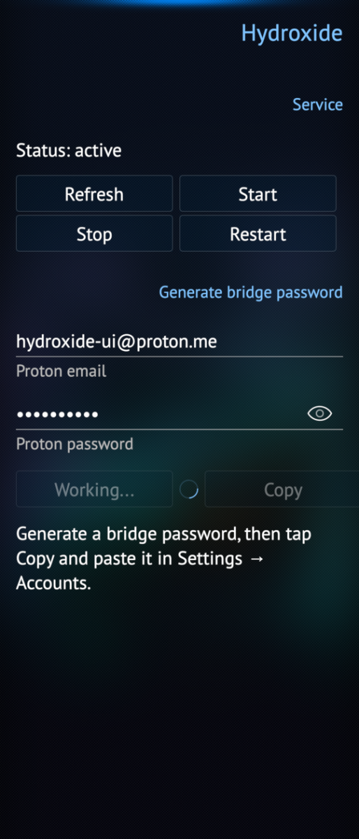 The harbour-hydroxide-ui is a Sailfish OS helper application for managing the Hydroxide Proton Mail bridge service. (hydroxide-service)