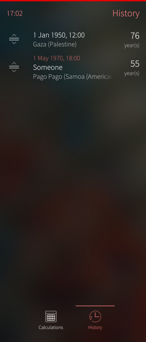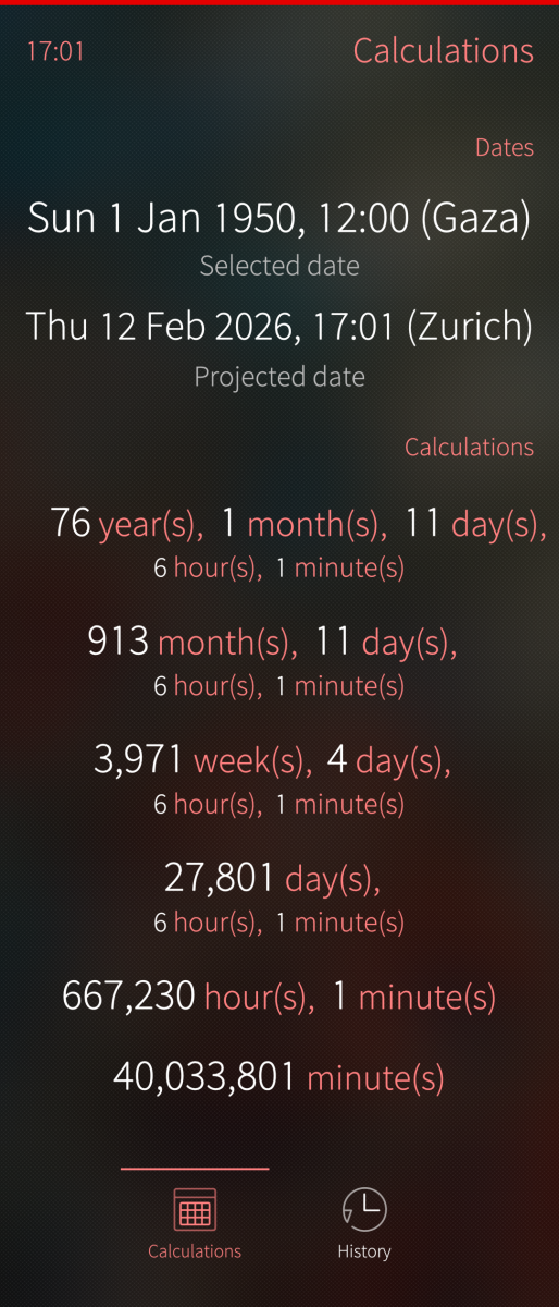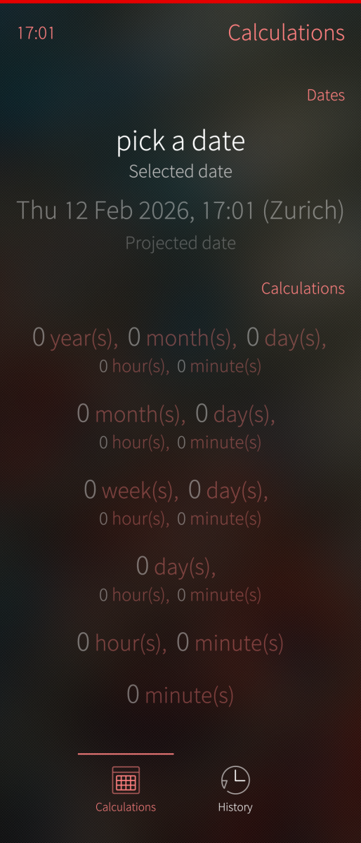 This app is inspired by Age Calculator with added support for time zones, calculating specific dates, and a history view.