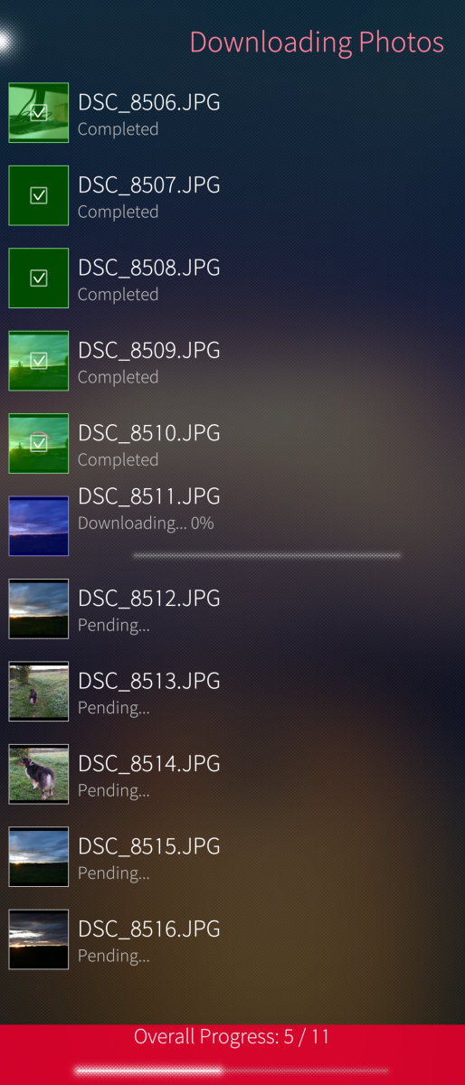 via USB or WiFi using the GPhoto2 library. It allows you to browse and download photos from connected cameras directly to your SailfishOS device.