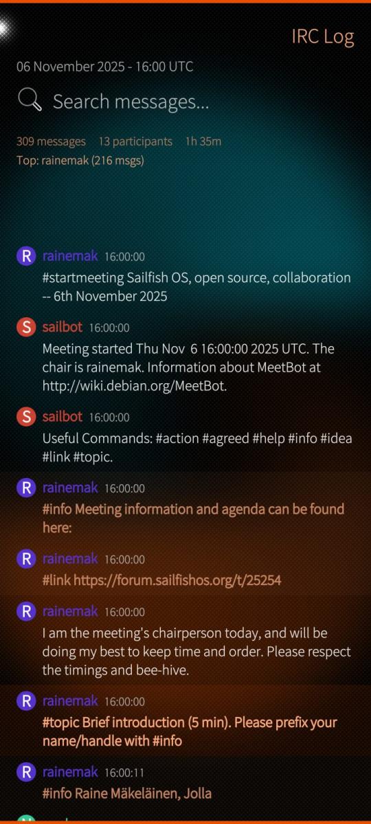 SFOS Meetings - Sailfish OS Meeting Logs Viewer