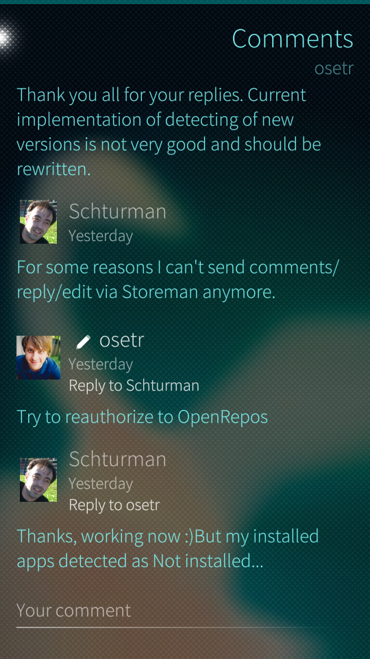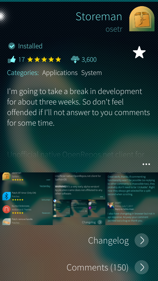 - Storeman Installer 1.3.1 and all later versions are offered as an update candidate for Storeman, if an RPM repository is enabled, which offers the harbour-storeman-installer package and Storeman (harbour-storeman package) < 0.2.99 is already installed.
