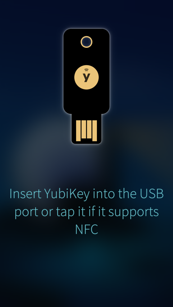 This app can talk to YubiKey via USB or NFC (if supported).